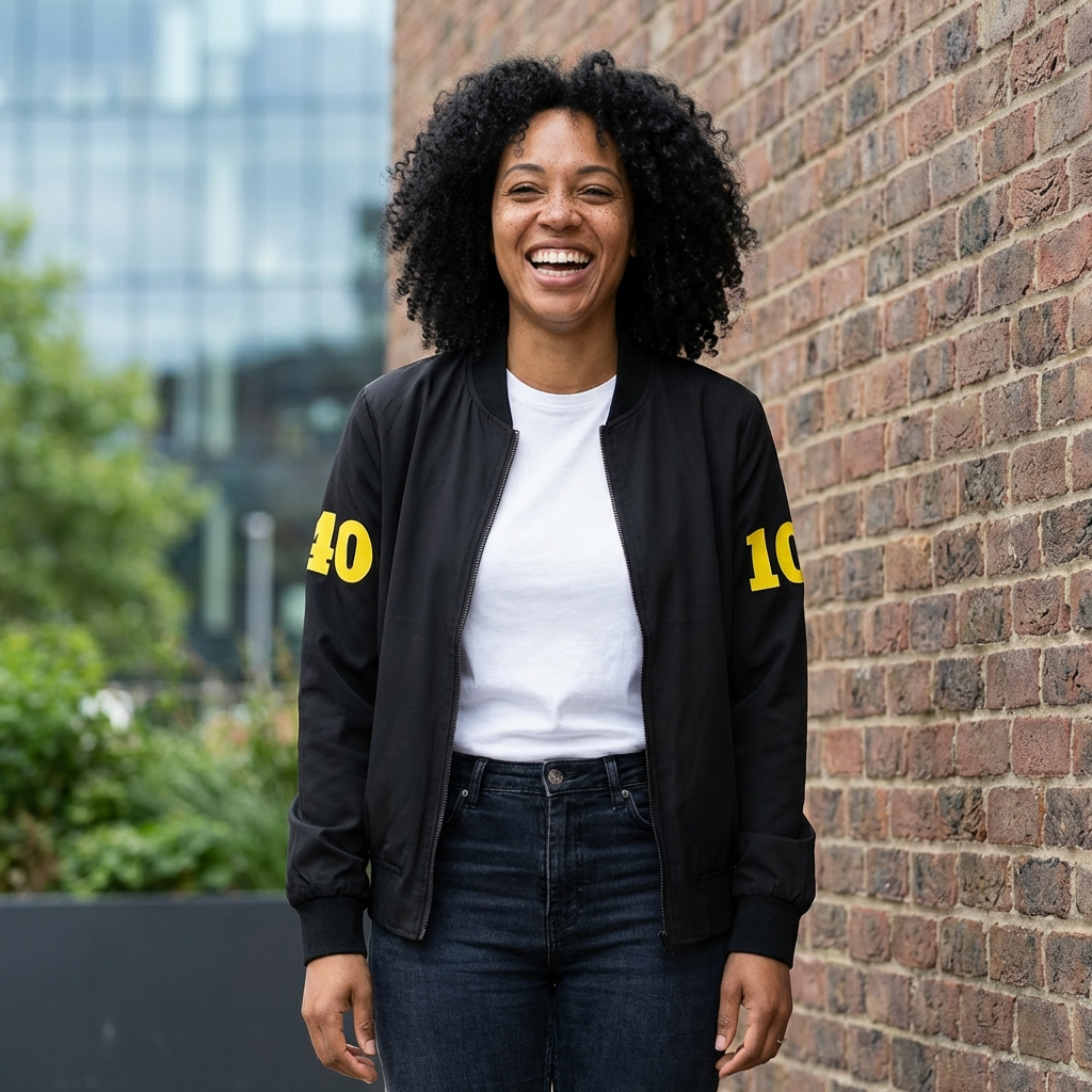 This bomber jacket brings a light, nostalgic energy to everyday wear. The clean white body with contrasting black ribbed collar, cuffs and hem creates a crisp vintage silhouette. On the back, a playful school-themed graphic — a large green “30,” a cheerful mascot with a megaphone and “Class of 1996” lettering — evokes reunion nights, alumni memories, and backyard celebrations. It’s lightweight and breathable, slips on easily over tees, and hangs relaxed across the shoulders for casual layering during cool evenings. Wear it to informal reunions, neighborhood meetups, or when you want a subtle throwback moment that starts conversations.
